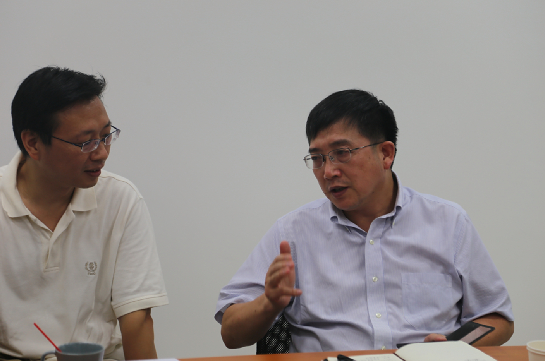 研讨会上,与会老师从思政课的重要性和对其进行教学改革的必要性出发,围绕“通识教育与思政课融合”教学改革相关问题进行了充分而深入的研讨。蒋荣、廖嵘、吕进、杜俊华等四位老师分别代表《毛泽东思想与中国特色社会主义理论体系概论》、《思想道德修养与法律基础》、《马克思主义基本原理概论》和《中国近现代史纲要》四个课程组作了主题发言。蒋荣老师基于第一线的教学实践,给大家介绍了教学改革应该“有计划”、“有研究”、“有助教”、“有团队”、“有评价”的基本经验,同时从“教师的胜任力”、“助教的胜任力”和“学生何时更给力”的视角阐述了目前教改等存在的问题。廖嵘老师结合自己教学实际,重点介绍了自己的教学改革活动的开展情况,特别是提出了如何激发学生参与教学的积极性、学生学习成绩的考评、助教的培育和培养的问题,引发了大家热烈的讨论。吕进老师认为思政课特别是《马克思主义基本原理概论》课应该培养学生的理解能力和逻辑思维能力,应该通过多样化的教学方式、手段和方法提升和培养学生的综合素质和修养。他还从专题教学、主题讨论教学、实践教学、考评等方面对教改过程中出现的问题进行了具体而深入的阐述。杜俊华老师结合《中国近现代史纲要》课的情况,着重强调了教师应该培养学生如何查找第一手的历史档案和文献资料的能力,应该让学生自己在参与教学活动过程中对中国近现代史有一个真实的了解和把握。他还结合自身教学实际,提出了“比较教学法”在《中国近现代史纲要》课教学活动中应用的观点。