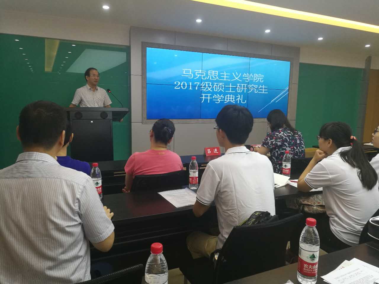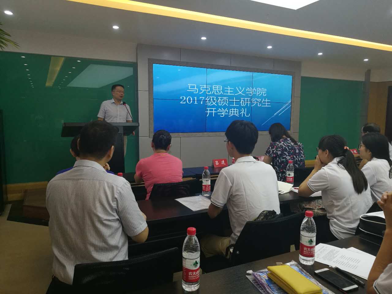 在408会议室举行了2017级硕士研究生开学典礼。本次典礼仪式由院长助理吕进主持。参加此次会议的有院长肖铁岩、党委副书记(主持工作)罗滌、副院长徐鲲、教师代表、以及全体2017级硕士研究生。