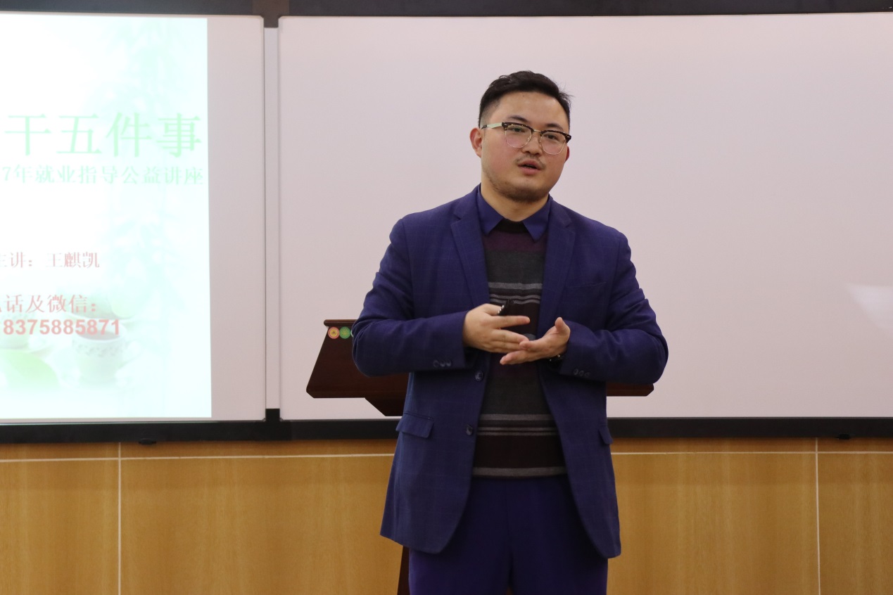随后,王麒凯根据同学们提出的问题进行针对性的讲解。王老师首先介绍了近几年的就业情况,提出虽然就业总人数多,但是国家重视群众就业,为青年人人生出彩搭建平台,在企业选择人才也在多元化发展。道路虽然是是曲折的,但前途是光明的。他提到“简历制作方面一定要做到真实性、创新性、针对性”。尤其是在针对性方面,他强调“不同专业有不同专业的出路。虽然很多人优秀,但是在职位选择的不恰当也会导致失败”,要求理解“因岗而定”。在求职意向的选择中一定要针对岗位的需求以及所需的专业水平,做好“匹配”工作。在简历内容方面体现其所需的综合素质,尤其是要通过关键字、词体现出来。其次,在面试方面,重点提到要明确“我想要做什么”和“我能做什么”两个方面,要明确个人意向与个人能力所在的问题。在薪资和待遇问题方面,他明确表示“作为职场新人和半成长品,要有长远目光,放眼个人能力的成长”,同时他强调在起薪、薪资结构、职业晋升方面也了解关注。随后,他详细和大家分享了关于三方协议签订与企业的就业协议补充协议异同及需要关注的详细问题、职业选择标准等问题,未毕业生同学解疑。