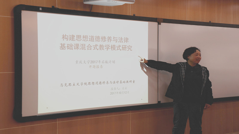 肖云教授作为课题负责人就启航计划进展进行了汇报,从研究背景、研究重难点、研究目标及预期成果等方面对“构建思想道德修养与法律基础课混合式教学模式研究”这一课题进行了详细的阐述。该课题以 “思想道德修养与法律基础课”课堂教学为基点,主张线上线下教育的无缝结合,注重现代信息技术与教学内容的深度融合,实现教学实践与学生日常思政教育相结合,最终提升“思想道德修养与法律基础课”课堂教学和实践教学的实效性并增强学生的获得感。