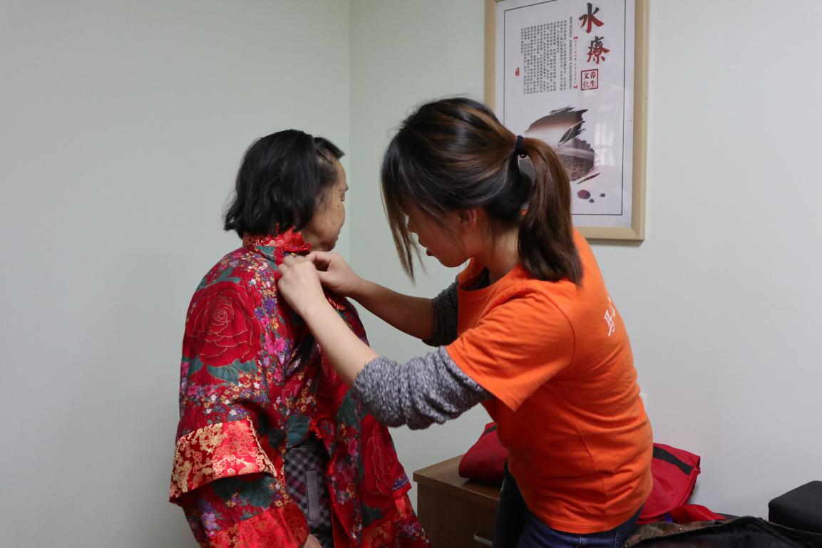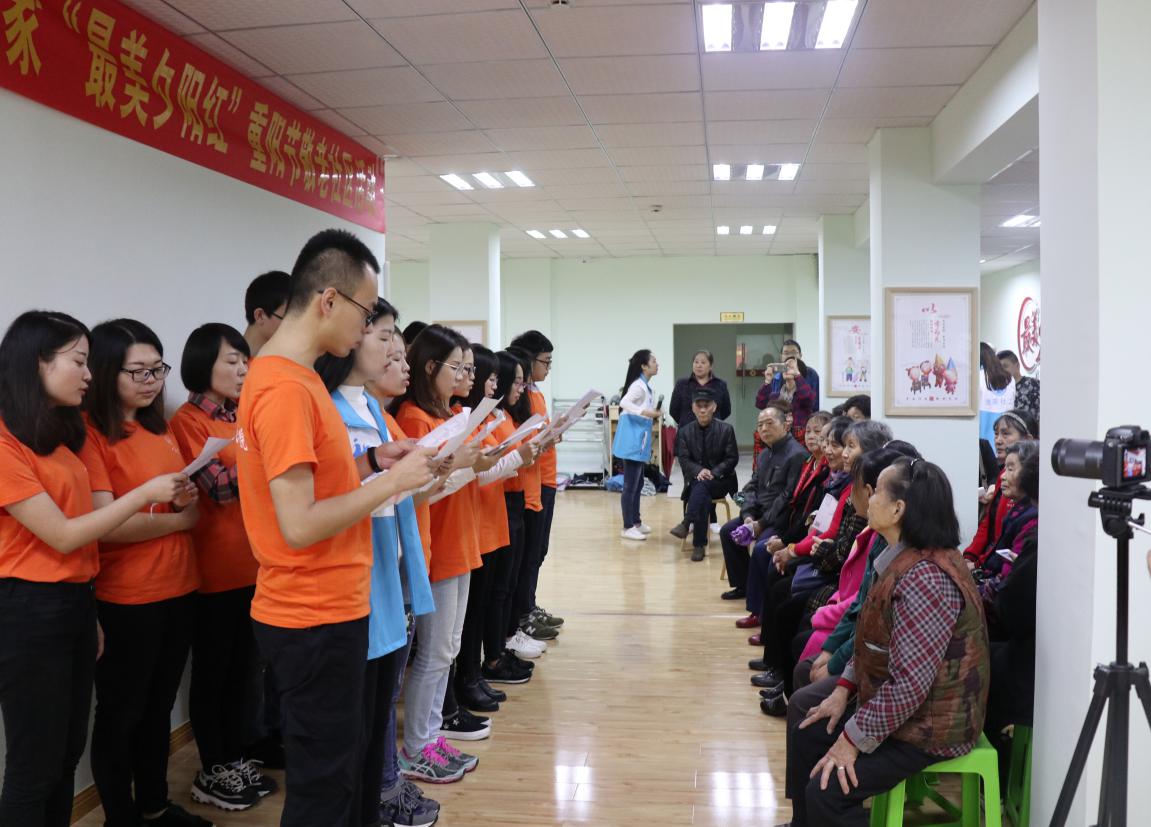 一首“高举党的伟大旗帜——歌颂祖国”的深情朗诵拉开了志愿者活动的帷幕,朗诵结束后,各位老人报以热烈的掌声和慈祥的笑容。随后,同学们各司其职、有条不紊地开展起志愿服务工作:有的负责现场引导、秩序维持等工作;有的与老人们谈天,并介绍党的十九大召开情况;有的协助医生,帮助老人体检;有的帮助老人整理衣物。在同学们的热情宣讲下,老人们谈心勃勃、意犹未尽,有的还穿上美丽的衣服,在我们的镜头下,留下了美好的回忆。