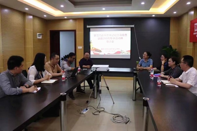 教师,我们必须认真学习、深刻领会,切实把习近平总书记重要讲话精神贯穿到教学、科研和宣传等各项工作中。杨泽文老师围绕新时代条件下如何进行高校思想政治理论课教师队伍建设、教学改革、人才培养等问题谈了自己的看法。他认为,习近平总书记的讲话对于我们思考这些问题都具有重要启示。柳海涛老师在座谈会上说道,“习近平总书记以一个大国的领袖和共产党总书记的身份深情回顾了马克思伟大的一生,从政治、文化、社会等方面论述了马克思主义与中国国情相结合,继承与发展马克思主义的重要意义。”