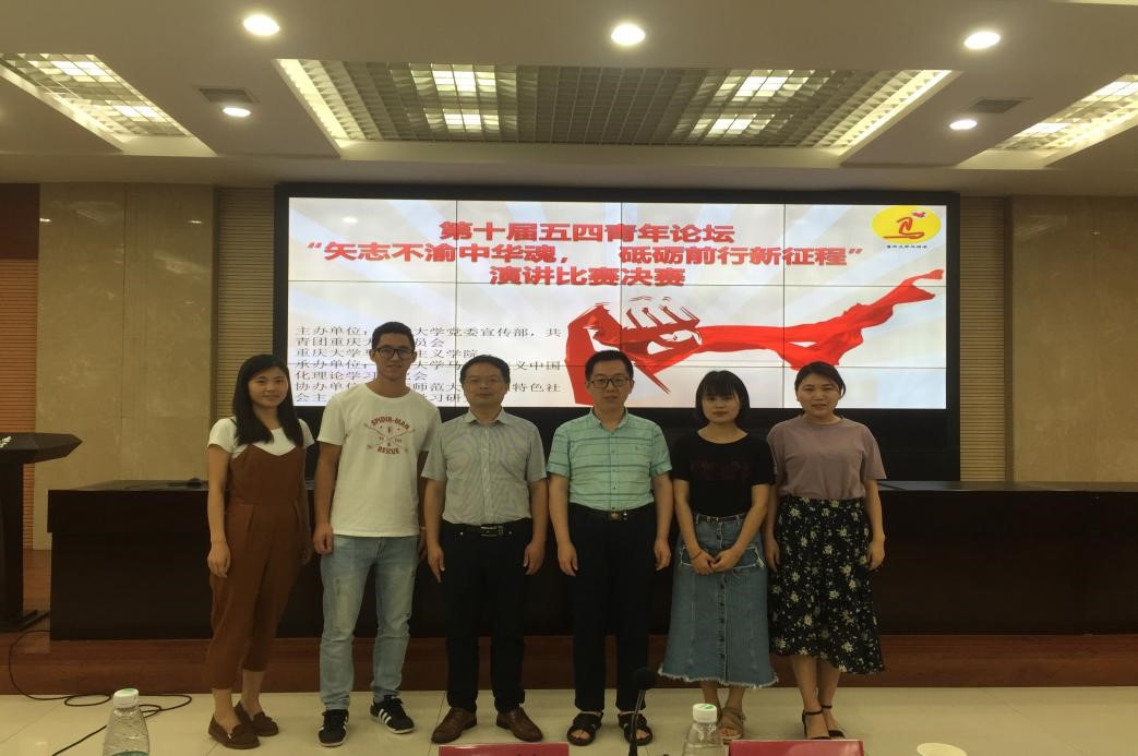 和2名来自重庆师范大学的选手进入决赛。比赛开始,主持人首先致以慷慨激昂的开场白,并就比赛规则及评分标准进行了简要说明。决赛现场上,演讲分为选手“主题演讲”和“即兴演讲”两个部分。主题演讲阶段,选手们可谓“八仙过海,各显神通”,有的幽默诙谐,有的成熟稳重,有的激情昂扬,有的真情感人,把爱国之情、青春风采展现得淋漓尽致。在“即兴演讲”阶段,选手们灵机应变,结合自身经历与大家分享着身边的奋斗故事,一段段努力拼搏、锐意进取的青春奋斗史,无不引起观众的强烈共鸣,鼓舞人心。此次演讲比赛,选手们准备充分、感情充沛、仪态端庄,他们的演讲或慷慨激昂,或深情低沉,或情感真挚,充分展示了当代大学生的语言功底和独特魅力。