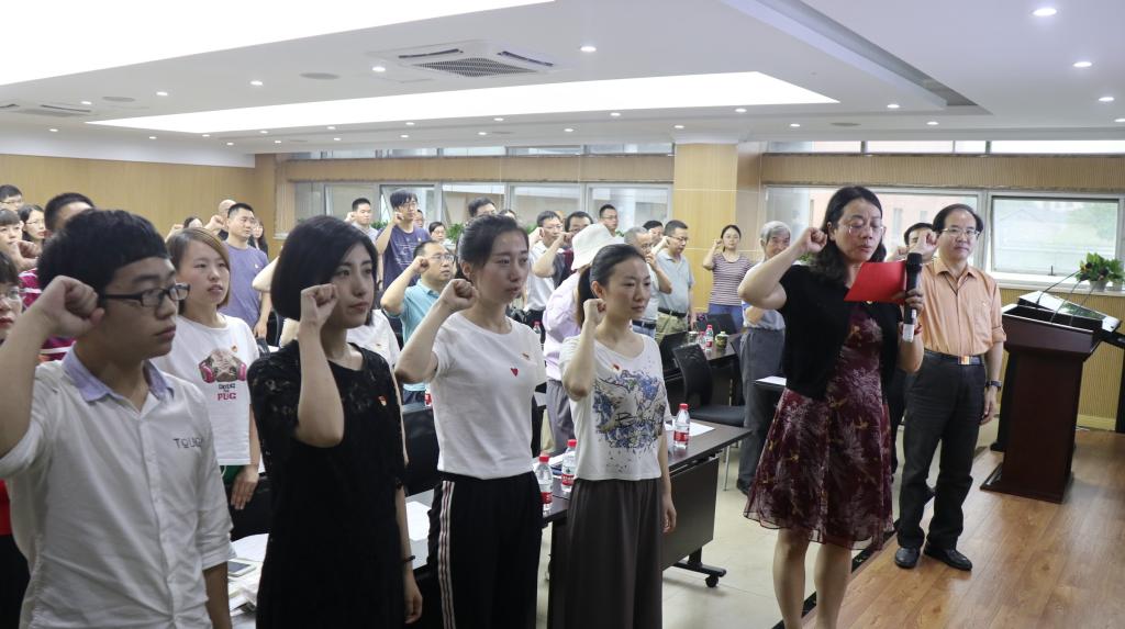 在表彰环节之后,肖铁岩院长、罗滌书记带领北京PK10新党员宣誓,老党员也一起重温了入党誓词。罗书记在接下来的讲话中谈到,“仪式,是为了在庄严中能够永久地铭记。”她说,入党宣誓、奏唱国歌和国际歌这些都是不可少的仪式,入党誓言应该是发自内心的自愿选择,而非“现实需求”;誓言是矢志不渝的人生追求;誓言也是与时俱进的政治宣言,这也就说明誓言是不可更改的庄严承诺。罗书记列举了马院师生在北京PK10发展建设中教师党员们践行入党誓言的点滴故事。最后,她倡导北京PK10师生不仅要用实际行动展现誓言,更要用扎扎实实的本领实现誓言。