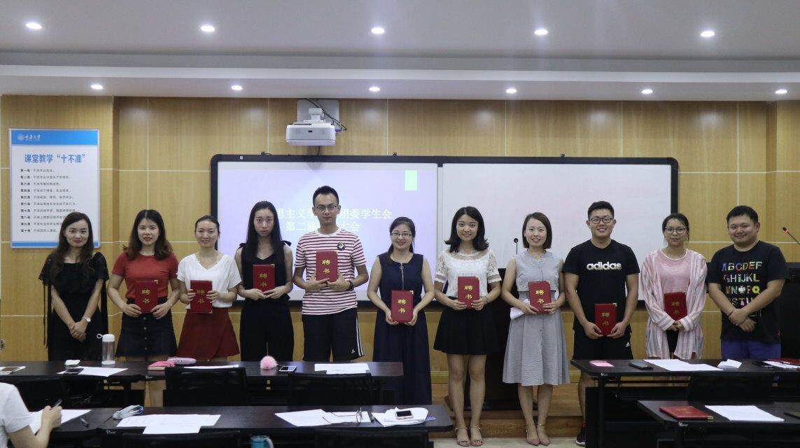 随后,李正超、兰青青等几位候选人依次进行竞选演说并回答评委所提问题,经过公正、公平、公开的选举,李正超、兰青青、蒋艺、卫婷婷、何佳佳及何丽玲六位同学成为新一届书记团、主席团成员。在会上,副主席马尚明为第一届新进干事孙瑶等五位同学颁发聘书,团委副书记严芹为杨蕾等六位部长颁发聘书,杨华、刘倩两位老师为第一届研团委学生会书记团、主席团成员周琳等八位同学颁发聘书。
