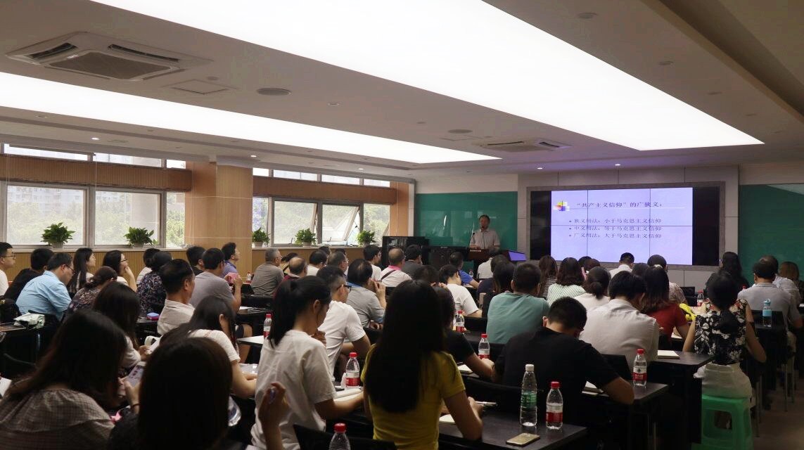 刘教授从共产主义信仰、马克思主义信仰与人民主义信仰的异同开篇,介绍了共产主义的历史渊源,告诉大家:共产主义并不是虚幻的,共产主义基因早在原始社会就埋下了。我们对家庭与家人的爱是一种信仰,对家庭和民族的认同,也是一种信仰;他认为每一个的心中都有一粒马克思主义的种子。