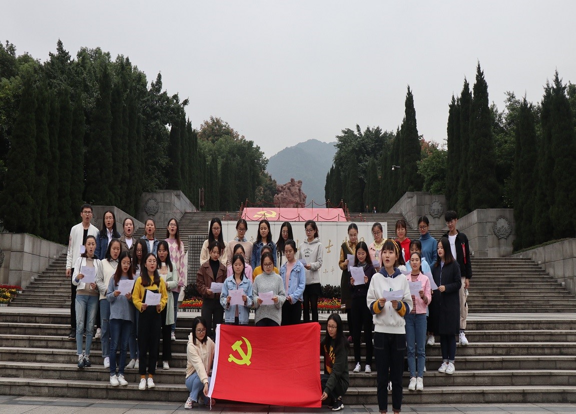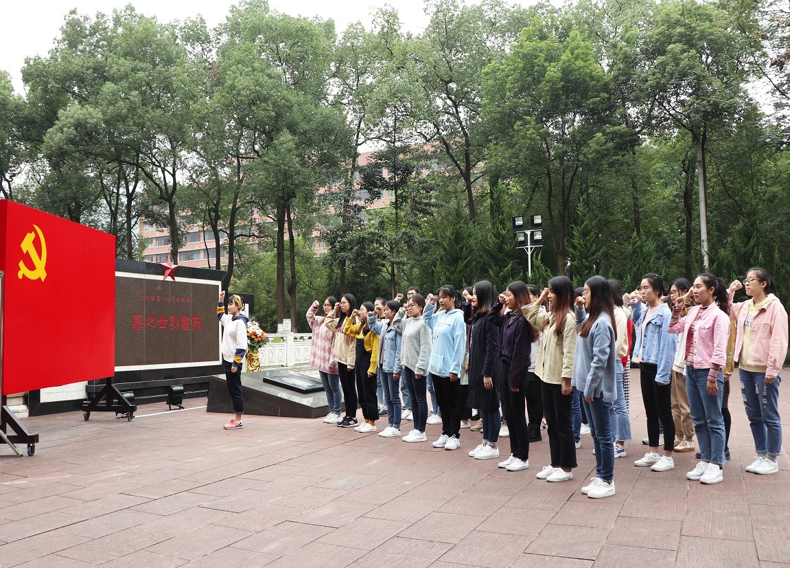 “我志愿加入中国共产党,拥护党的纲领,遵守党的章程……”34名同学齐声宣誓,声音铿锵而豪迈。面向党旗,举起右手,朗朗诵念入党宣誓词,是每一个共产党员毫无例外要理解的一种庄严仪式,而站在革命烈士纪念碑前,在庄严神圣的党旗下,重温入党誓词,则又多了几分震撼,更是一种终生难忘的经历。重温的不仅是入党的初心,更是对革命先烈们坚贞不屈、百折不挠的革命精神的追忆。