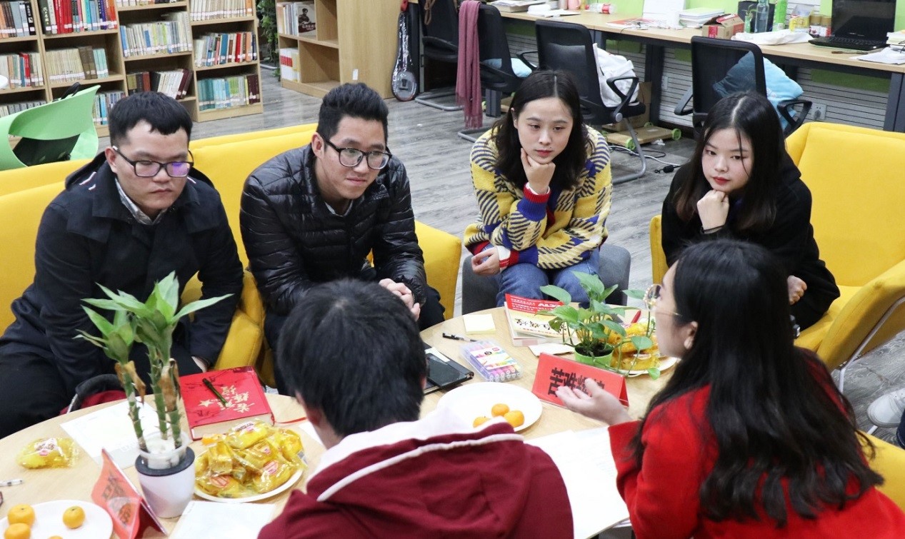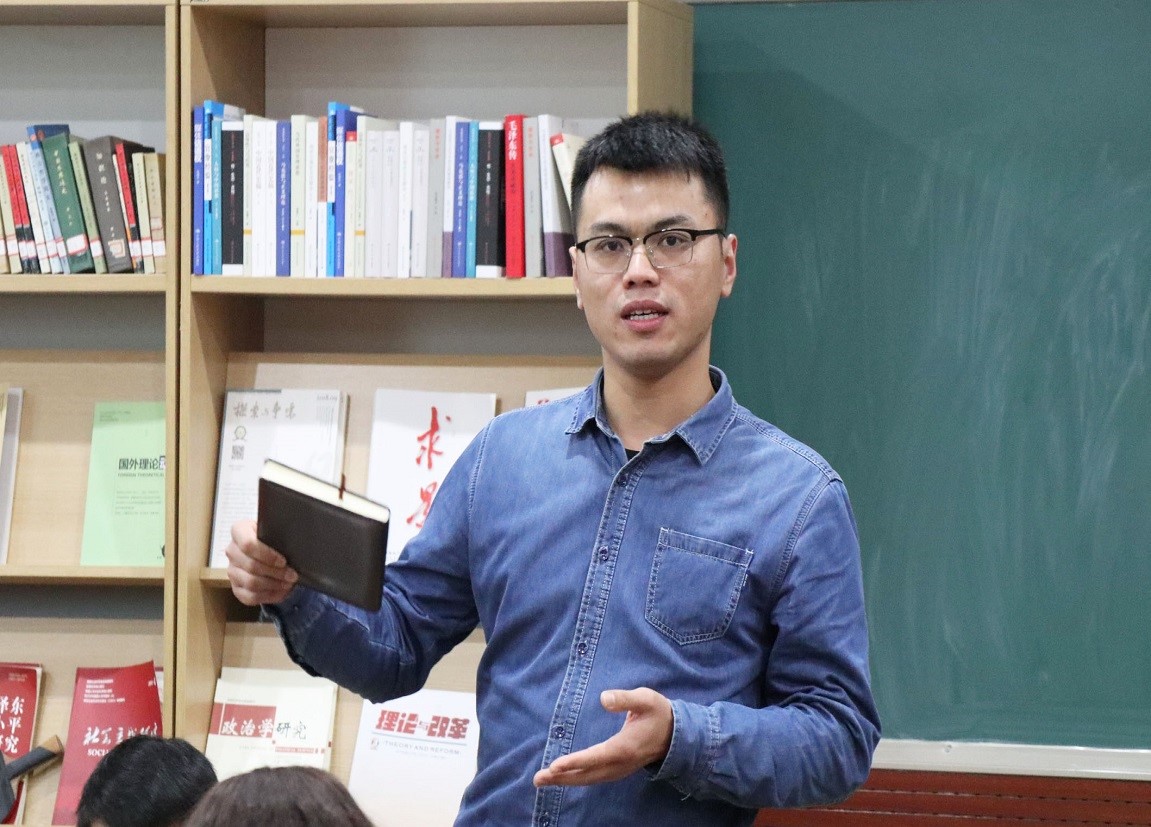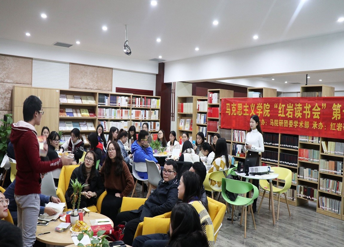的兰佩琳同学代表《红岩》阅读小组,向大家分享了江姐等革命烈士坚持真理、追求自由的革命意志,并提出问题与大家讨论交流,精心准备的两个问题激发了同学们参与活动的积极性,将读书会活动推向了高潮。来自动力北京PK10的刘啟文同学说:“看到大家观看纪录片时的目不转睛,分享读书心得时的慷慨激昂,朗诵经典段落时的真情流露,制作小组读书笔记时的欢快愉悦,觉得马院这个读书会活动办得有意思,是一个既能读书又能交友的好活动,希望以后还能继续参加。”